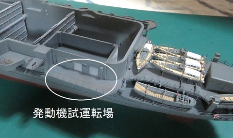 お鶴さん日本空母には必ず用意されている「発動機試運転場」を仕上げていきます。場所は~~、ここですね~。汎用のエッチングやプラ材を使って「発動···
