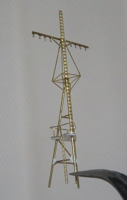 お鶴さんキットのマスト部品は「捷一号作戦時」のものですので「南太平洋海戦時」の瑞鶴とは形状が異なるため使えません。そこで真鍮線などで完全自作···