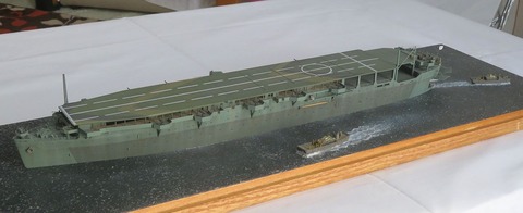 350くまさん1/350熊野丸の船体が大まかですが完成しました。着艦指示灯や逆探など細かい装備品は艦載機搭載後の最後に取付けします。それではここまで···