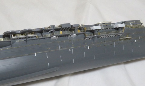 お鶴さん右舷は艦首側から仕上げていきます。いちおうですがこんな感じです。うっかり触ると壊れますのでだんだんと取り扱いは慎重になってきました・···